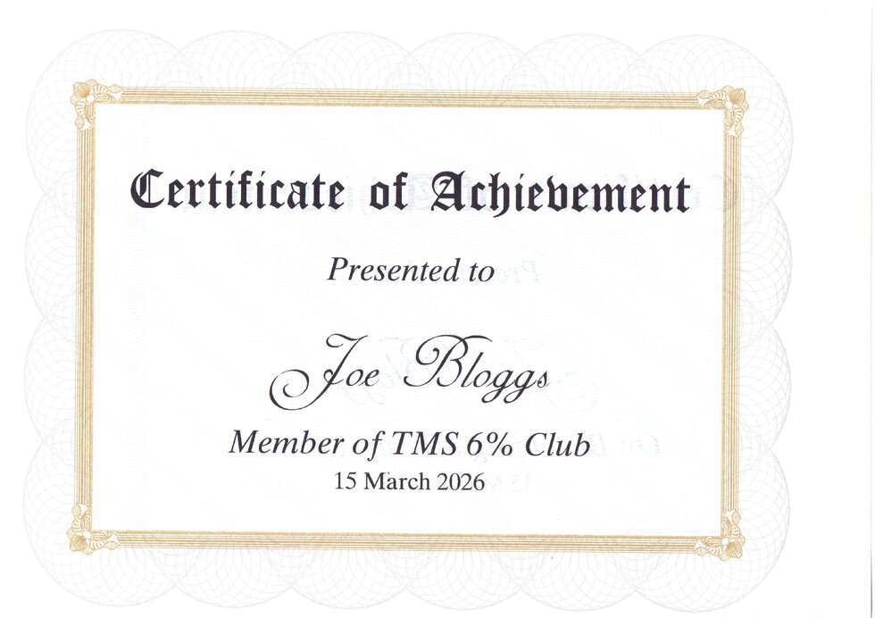 TMS keep records. You may use certification to show to prospective Distributors or future employers.